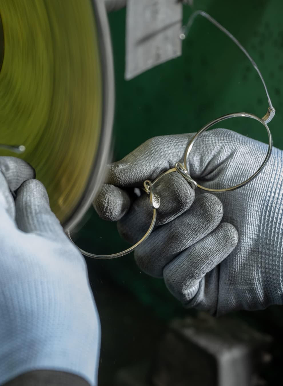 金属メガネフレームの研磨業務・レーザーマーキング業務を行っております。